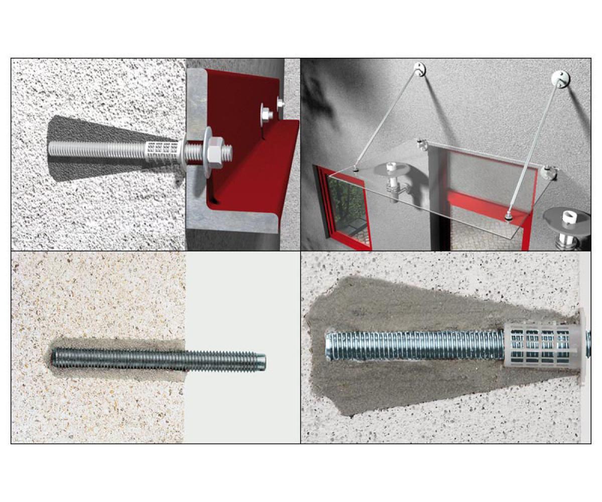- Das konische Bohrloch garantiert durch Formschluss maximale Tragfähigkeit in Porenbeton.