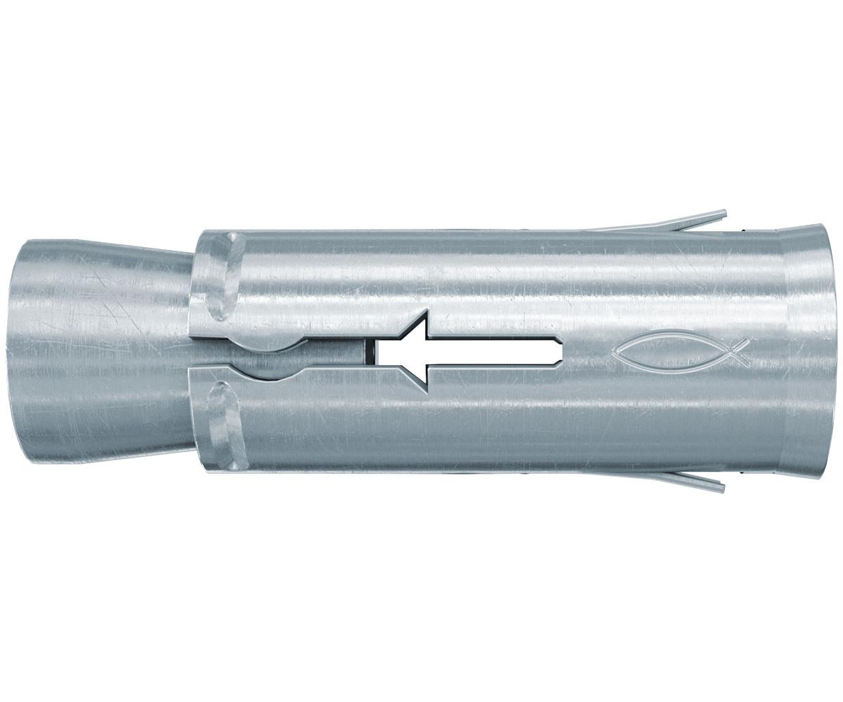 Der fischer Hohldeckenanker FHY ist ein Innengewindeanker aus galvanisch verzinktem Stahl. Der FHY wird in der Vorsteckmontage mit der Hand ins Bohrloch gesetzt und mit dem Hammer bündig zur Oberfläche des Baustoffes eingetrieben. Beim Aufbringen des Drehmoments wird der Konus in die Spreizhülse gezogen. Im Hohlraum spreizt diese auf und im Vollbaustoff verspannt sich diese gegen die Bohrlochwand. Der fischer Hohldeckenanker FHY ist ideal für die Befestigung von Rohrleitungen, Kabeltrassen, Lüftungsleitungen in Spannbeton-Hohlplattendecken im Innenbereich.