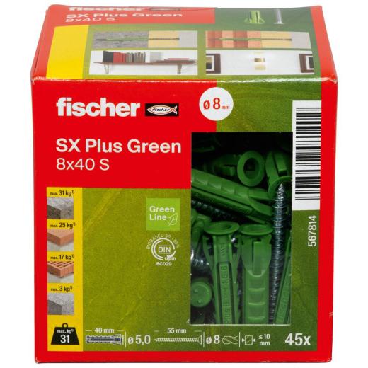 fischer Expansion plug SX Green 8 x 40 R S with rim and screw