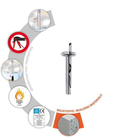 - Montagefertiger Schlaganker aus galvanisch verzinktem Stahl, Du?belschaft mit Lochscheibe Ø 15 mm, Dicke 2,5 mm und Spreizkeil